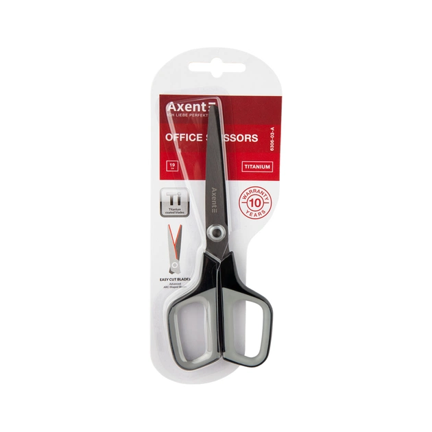 Офісні ножиці з пластиковими ручками ергономічної форми Axent Titanium. Використовуються для різання паперу, картону, тканини і т.д. Якісний матеріали та збирання, продумані деталі ножиць забезпечують комфортну, безпечну роботу і довговічність.