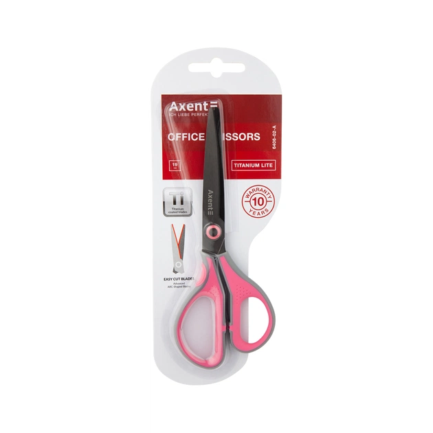 Офісні ножиці з пластиковими ручками ергономічної форми Axent Titanium. Використовуються для різання паперу, картону, тканини і т.д. Якісний матеріали та збирання, продумані деталі ножиць забезпечують комфортну, безпечну роботу і довговічність.