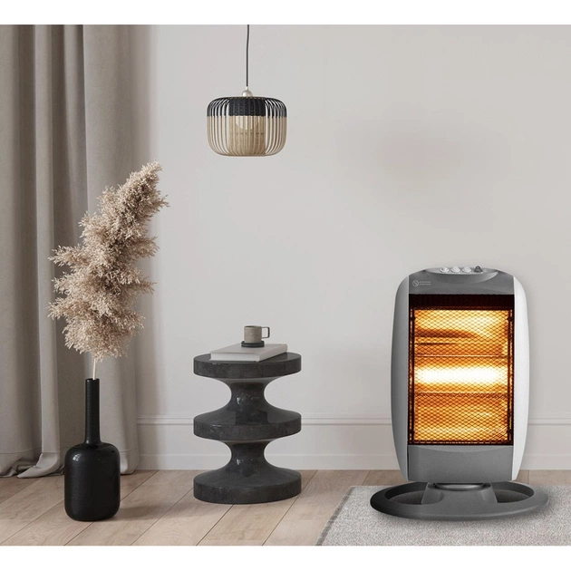 Цей обігрівач вирізняється механічним управлінням, що дозволяє легко регулювати необхідний рівень комфортної температури. Його вишуканий сірий дизайн гармонійно поєднується з інтер'єром будь-якої кімнати, а підлогове встановлення додає гнучкості у використанні.