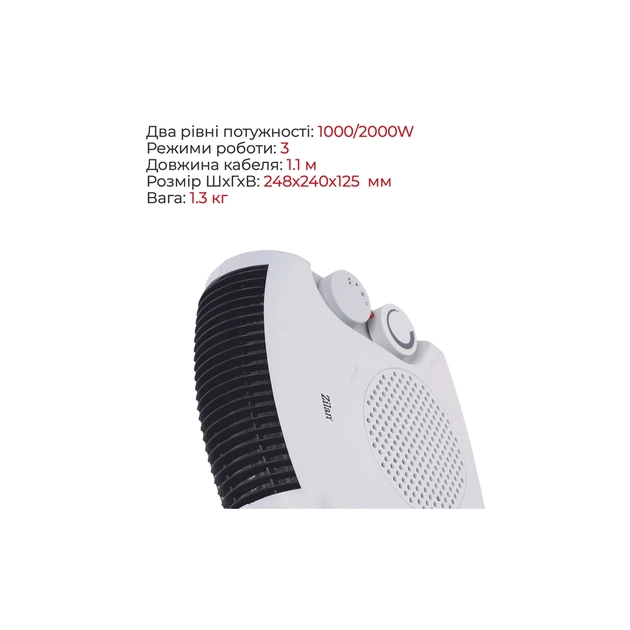 Обігрівач Zilan ZLN5534 – це поєднання потужності, компактності та сучасного дизайну, що робить його ідеальним вибором для обігріву невеликих приміщень до 20 кв. м. Завдяки потужності 2000 Вт і спіральному нагрівальному елементу, цей тепловентилятор забезпечує швидкий та ефективний нагрів у будь-яку пору року.