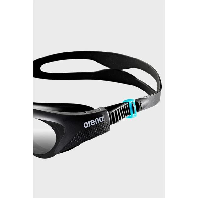 Універсальна посадка на будь-який тип обличчя завдяки гнучкій оправі з термопластичної гуми. Ущільнювач відрізняється унікальною формою, побудованою на основі анатомічних особливостей людської особи. Лите перенісся саме підлаштовується під форму носа. Роздвоєний силіконовий ремінець із бічними кліпсами. Вигнута форма лінз дає широкий огляд. Лінзи оброблені складом anti-fog, що запобігає їх запотіванню під час плавання.