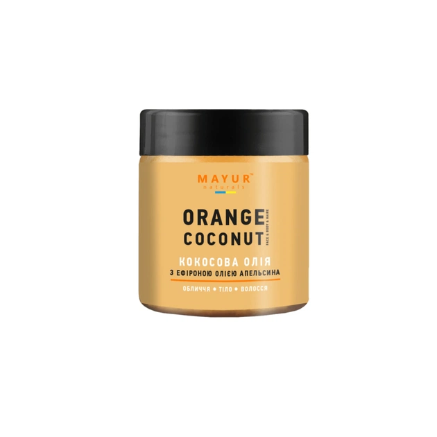 Кокосова олія Mayur надасть на вашій шкірі легкого аромату апельсина, зробить її ніжною й здоровою. Ефірна олія апельсину огорне вас сяйвом і любов'ю, піднесе настрій. Засіб заспокоює, знімає почервоніння, відновлює регенерацію шкіри в разі опіків і пошкоджень, запобігає розтяжкам, відновлює еластичність і молодість шкіри.