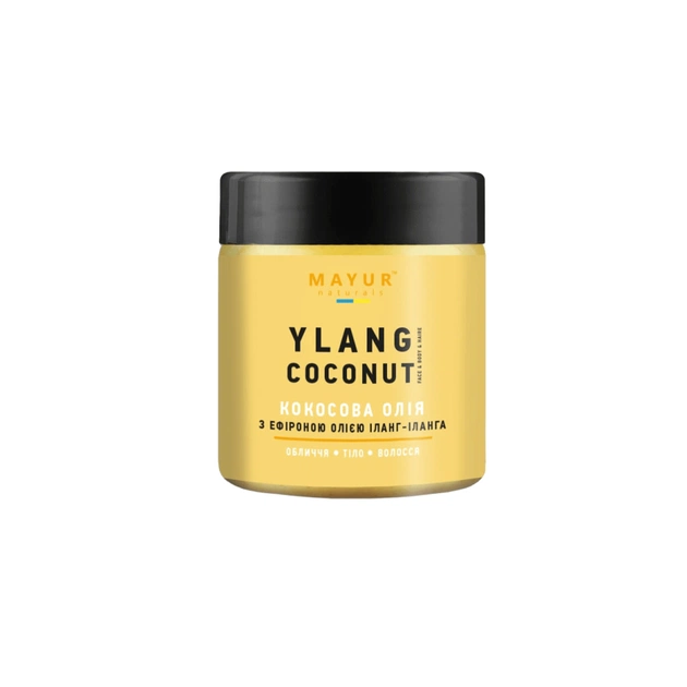 Кокосова олія Mayur залишить на вашій шкірі легкий аромат пристрасного іланг-ілангу, зробить її ніжною й здоровою. Ефірна олія іланг-ілангу занурить вас у світ пристрасті та солодких мрій. Засіб пасує для чутливої та в'ялої шкіри, добре відновлює водний баланс у клітинах і повертає пружність.