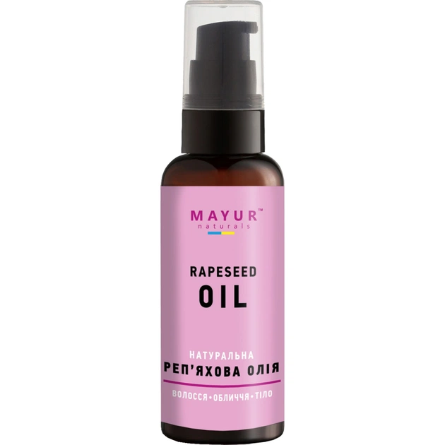 100% натуральна реп'яхова олія Mayur преміум якості. Має у своєму складі унікальні компоненти, які відновлюють волосяні фолікули та зупиняють випадання волосся. Олія також заспокоює й живить суху шкіру.