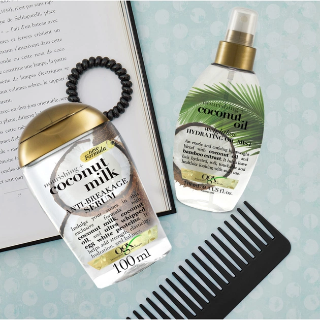Легка зволожуюча олія-спрей OGX, збагачена кокосовою олією та екстрактом бамбука, делікатно зволожує і надає волоссю м'якості та здорового вигляду. Олія-спрей з кокосовою олією має приголомшливий аромат, який допомагає зануритися у світ задоволення та насолоди.