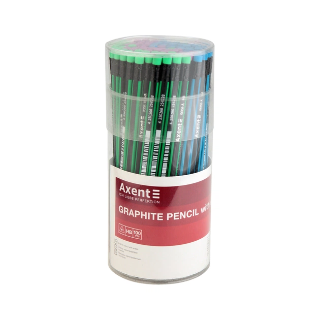 Олівець графітний Axent тригранний, з гумкою, НВ (9006/100-A)