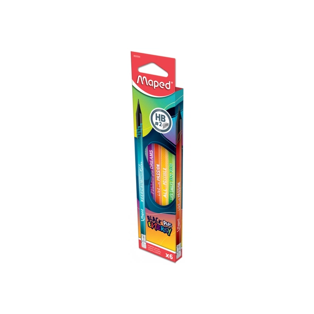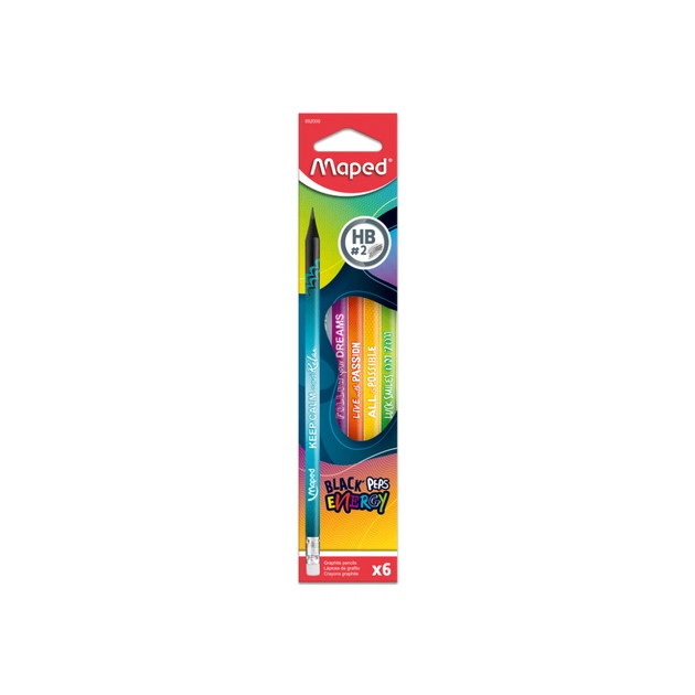 Олівець графітний Maped набір BLACK PEPS ENERGY HB, з гумкою, 6 шт (MP.852000)