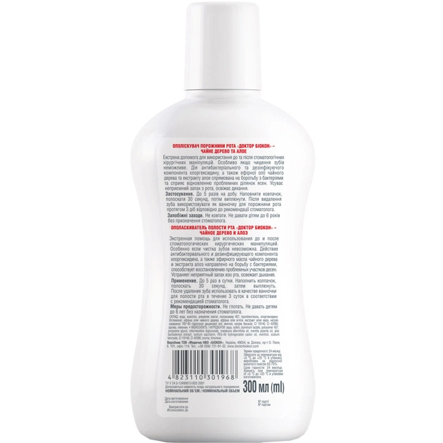 Ополіскувач для порожнини рота Біокон Доктор Біокон Чайне дерево та алое 300 мл (4823110301968)