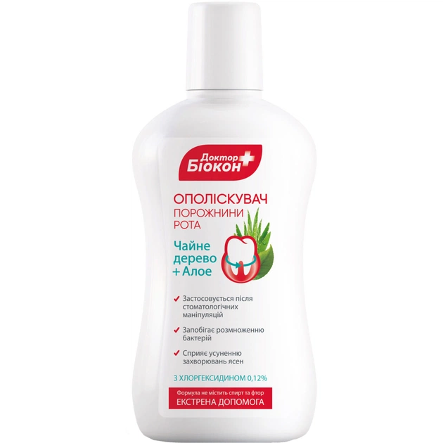 Регулярна чистка зубів є одним із головних способів підтримки гігієни та здорового стану зубів. Але що робити, якщо чищення зубної емалі неможливо? Спеціалісти бренду «Біокон» розробили на цей випадок спеціальний ополіскувач для ротової порожнини з екстрактами чайного дерева та алое. Рідина легко проникає у важкодоступні місця і видаляє залишки нальоту, їжі та мікробів. Компоненти засобу мають високий протизапальний потенціал, тому це відмінний вибір для людей з підвищеною чутливістю.