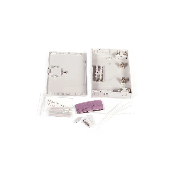 Компактний, прохідний оптичний бокс для розміщення всередині будівель. Рівень захисту: IP20. Кріплення: до стіни дюбелями (у комплекті).