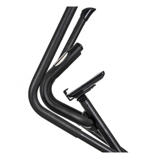 • Інформативна консоль: LCD-дисплей із білою підсвіткою та мікрометричним регулюванням нахилу дозволяє детально відображати час, швидкість, дистанцію, калорії, пульс, оберти за хвиилну, потужність (watt) і поточну програму тренування. Тримач для смартфона/планшета забезпечує зручність під час моніторингу даних.