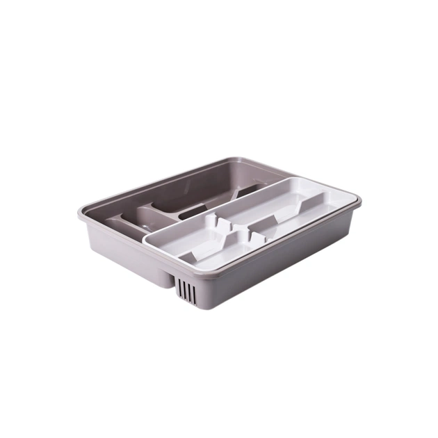 Лоток для столових приладів із вставкою відрізняється вдосконаленою конструкцією. Виріб комплектується додатковим лотком для столових приладів, формуючи 2-поверхову конструкцію.