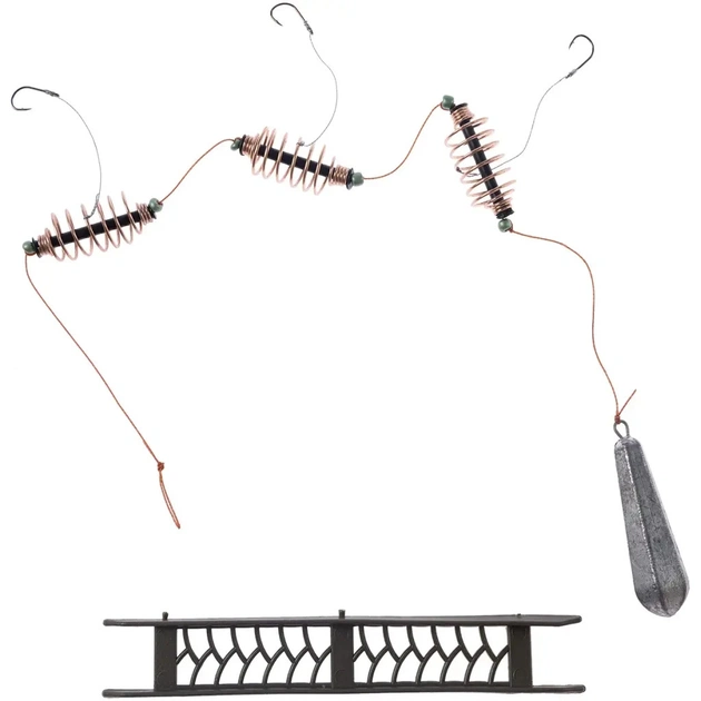 Оснастка X-Fish Вбивця карася - це тандемна донна фідерна оснастка. Призначена для лову карася на озерах і ставках. За допомогою цього оснащення, можна доставити підгодовування в зону лову. Закріплюється підгодовування в годівницях оснащення. Оснащена гачками Leader № 7, годівницями і грузилом.