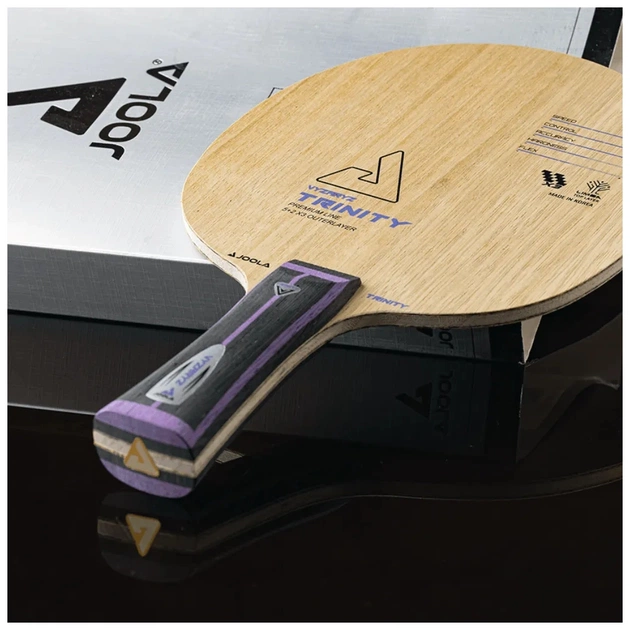 Якщо ви шукаєте революційну деревину, яка поєднує в собі потужність, силу, відчуття та точність, ви не пошкодуєте, вибравши JOOLA Vyzaryz Trinity. Цю деревину вибрав австрійський тенісист Даніель Хабесон (Daniel Habesohn), чемпіон Європи та олімпієць. Секрет цієї деревини полягає в революційній суперкомпозитній тканині X3, що складається з горизонтальних шарів синтетичного матеріалу PBO-C, а також вертикальних шарів арилату і вуглецю (ARY-c). Ці шари поширюються на ручку, створюючи надзвичайну стабільність і консистенцію. Зовнішній шар деревини Limba додає більше дотику та контролю кожного удару.