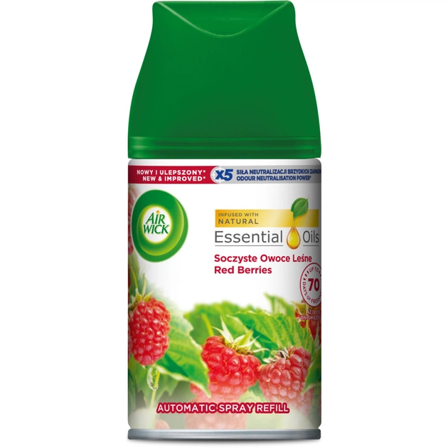 "Ранок у лісі" розкривається ароматами ожини, роси і дикого размаріна. Змінний балон до автоматичного освіжувача повітря "Ранок в лісі" Air Wick Freshmatic ефективно позбавляє будинок від неприємних запахів. Просто вставте аерозоль в тримач, виберіть інтервал розпилення і Air Wick Freshmatic буде автоматично розпорошувати свіжий, легкий аромат.