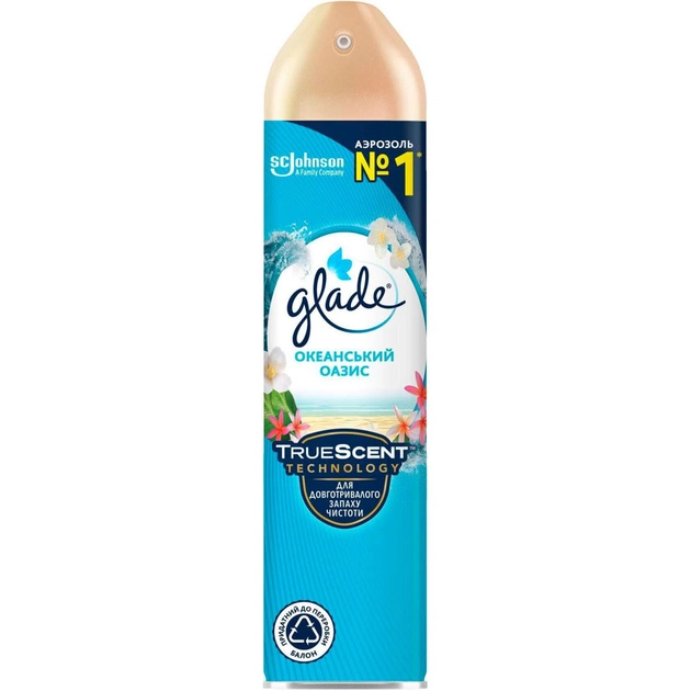 Освіжувач повітря Glade Океанський оазис - це ефективний і зручний спосіб створити у вашому домі атмосферу свіжості та чистоти. Освіжувач повітря розпорошує в повітря приємний аромат, який надовго позбавить від неприємних запахів. Аромат океанського бризу огорне вас відчуттям прохолоди та свіжості. Він немов перенесе вас на тропічний острів, де ви зможете насолодитися чистим повітрям і шумом хвиль. Освіжувач повітря Glade Океанський оазис не містить хлорфторвуглеців, тому він безпечний для здоров'я людини та навколишнього середовища.