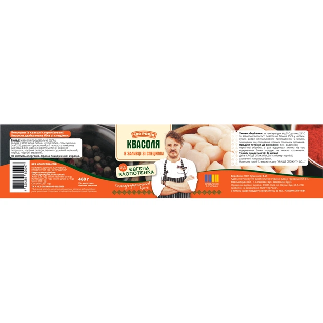 Овочева консервація 100 РОКІВ Квасоля Делікатесна біла зі спеціями 460 г (4820285620047)