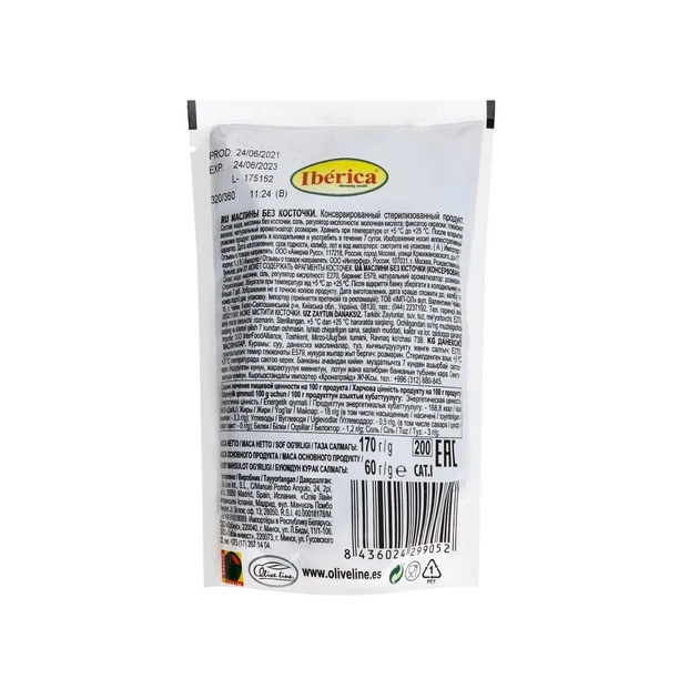 Овочева консервація Iberica Маслини без кісточки в пакеті 170 г (8436024299052)
