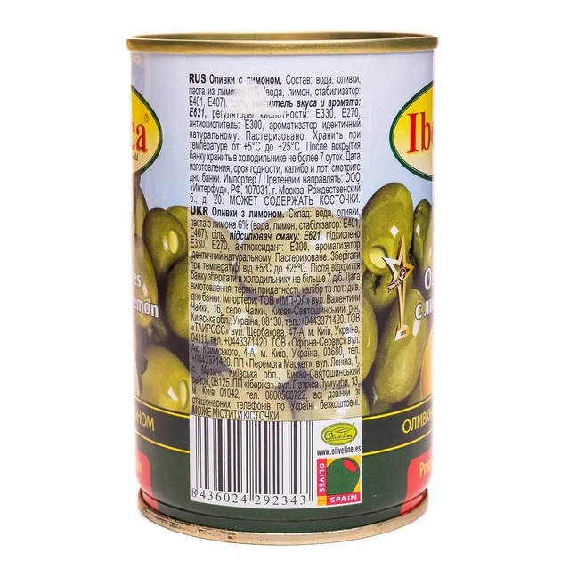 Оливки Iberica - це зелені плоди фаршировані лимоном, запаковані в зручну упаковку. Ідеально підходять для використання в різних стравах, закусках, салатах і аперитивах. Ці оливки володіють насиченим смаком і ароматом, який чудово доповнює різноманітні кулінарні композиції.