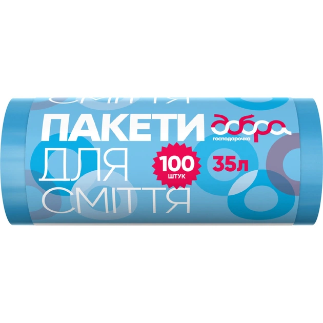 Пакети для сміття Добра Господарочка 35 л 100 шт. — призначені для підтримання чистоти в будинку. Завдяки стійкому дну наповнені пакети для сміття не перевертаються. Зручні у використанні. Пакети мають приємний світло-синій колір.