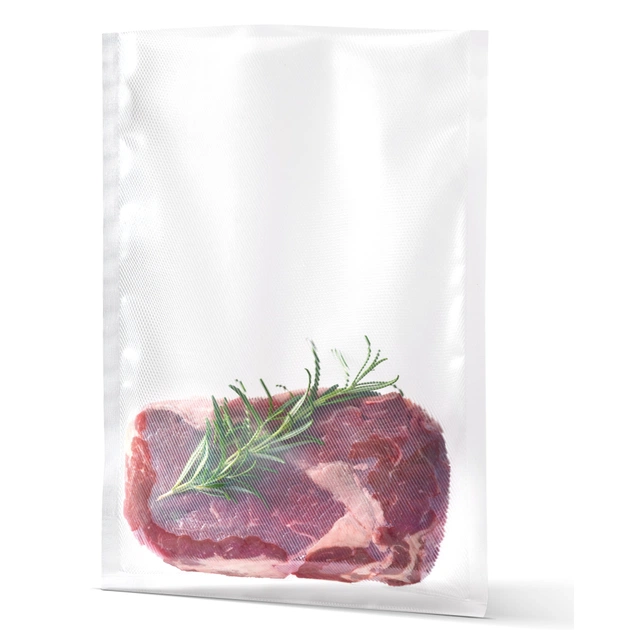 Мішки для вакуумних пакувальників, конструкція з подвійними каналами. Виготовлений із матеріалу, що не містить BPA та схваленого FDA, для безпечного зберігання харчових продуктів. Можна використовувати в морозильній камері та холодильнику, можна варити та тушкувати на повільному вогні, а також використовувати для приготування їжі методом sous vide. Робоча температура: -20°C до 100°C. Містить 50 пакетів розміром 22 см x 30 см. Підходить як для вбудованих, так і для автономних вакуумних пакувальників.