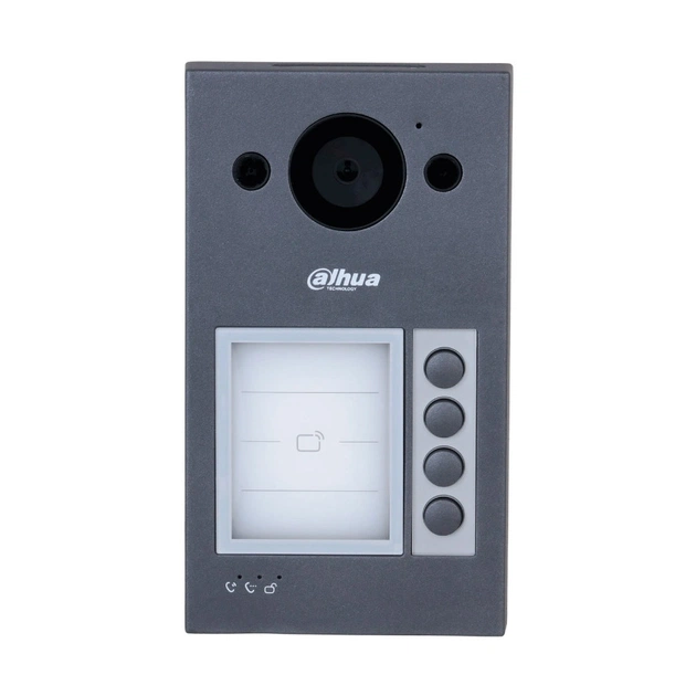 DHI-VTO3311Q-WP — накладна панель виклику з металу, призначена для розміщення на вході в домівку або будинок. Зв'язується з домофонною системою та має Wi-Fi підключення. Завдяки міцному корпусу і дашку, має водонепроникну і морозостійку властивість. Може експлуатуватися у вуличних умовах цілий рік. На фронтальній частині є Mifare-зчитувач, призначений для швидкого доступу за допомогою ключа. Також є камера та голосовий зв'язок. Можна підключити VTO3311Q до програми та керувати здалеку. Інтегрується до двох замків одночасно. Для дзвінка використовуються механічні кнопки. Ця модель максимально надійна та зручна при експлуатації як контрольна система.