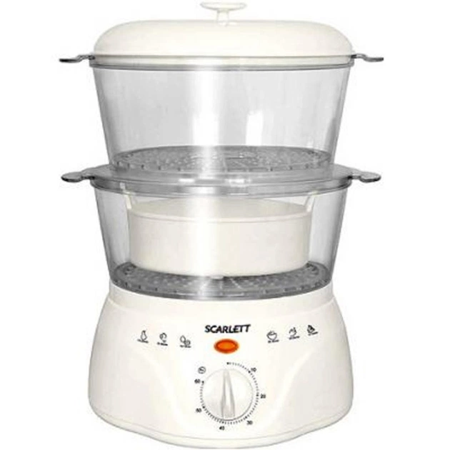 Модель SCARLETT SC-142W відрізняється простотою управління - з ним впорається навіть починаючий користувач. Пароварка оснащена такими функціями: таймер, чаша для приготування рису. Завдяки компактності, дану модель можна розмістити навіть в маленькій кухні. Варто відзначити компактність приладу.