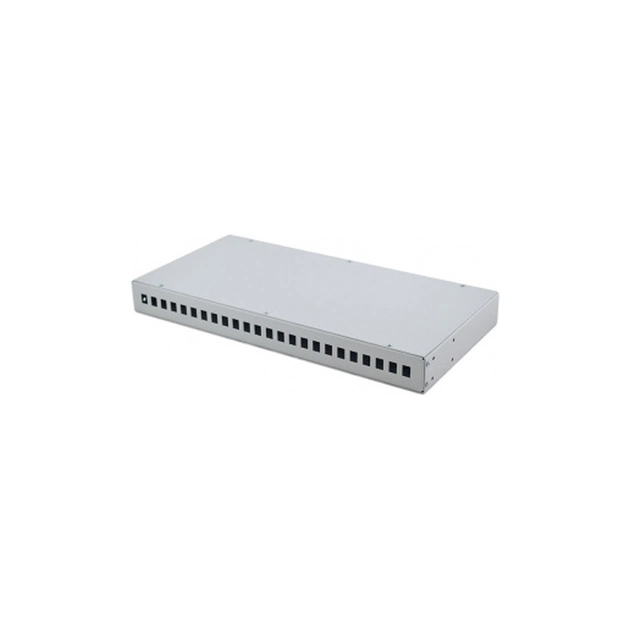 Патч-панель Сrosver FOB 19/1-332-SC lite виготовлена з листової сталі товщиною 1 мм і має високоякісне покриття порошково-полімерною фарбою світло-сірого кольору.