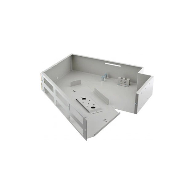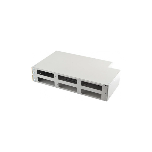 Патч-панель FOB-19/2-336/36-2-48 складається з сталевого корпусу з кришкою і висувної передньої панелі для зручного доступу всередину. Висувна панель поворотного типу може відкриватися наліво, забезпечуючи доступ до сплайс-касет без демонтажу з стійки. На передній панелі є 6 посадочних місць, в які можна встановити лицьові панельки під адаптери.