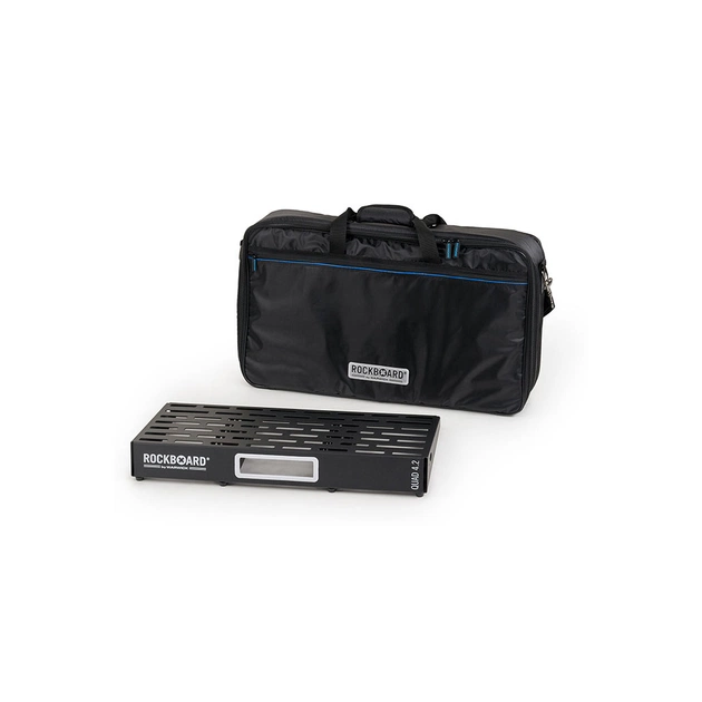 Оригінальна легка, жорстка і міцна конструкція заснована на одному зігнутому аркуші алюмінію холодної прокатки і доповнена U-подіними вертикальними скобами для додаткової стабільності. Інноваційний слотований дизайн не тільки вирізняється витонченістю і лаконічністю, а й дозволяє заховати комутаційні кабелі і розмістити від 9-ти до 15-ти педалей. А для зручності зберігання і транспортування RockBoard QUAD 4.2 комплектується фірмовою сумкою з ремнем через плече.