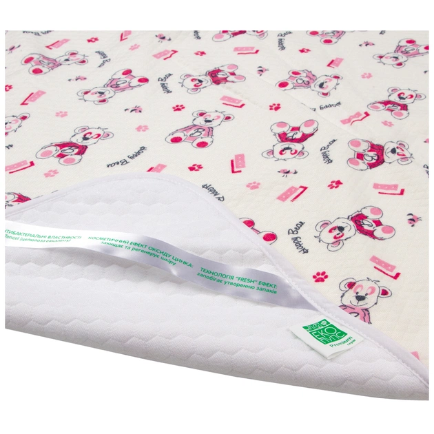 Двостороння вбирає непромокаємий пелюшка Еко Пупс серії Soft Touch Premium виконана, з одного боку, з розкішного стьобаного однотонного полотна, на основі евкаліптових волокон Tencel і Smartcel Sensitive. Поверхня пелюшки має благотворним косметичним впливом на шкіру і сприяє її регенерації завдяки входить до складу Smartcel Sensitive оксиду цинку. Іони цинку з технологією Dermofresh створюють ефект свіжості, перешкоджаючи накопиченню неприємних запахів. Поверхня, ламінована дуже тонкої непромокаючої «дихаючої» мембранної тканиною, захищає поверхні від сухих і вологих забруднень. Друга сторона пелюшки – мега об'ємна і неймовірно м'яка трикотажна тканина з принтом. Пориста трикотажна тканина добре вбирає і утримує вологу, володіючи високим ступенем гігроскопічності.