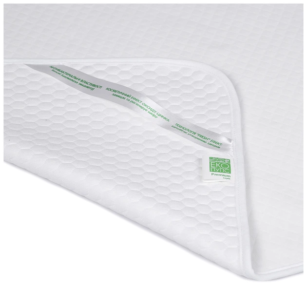 Двостороння вбиральна, непромокальна пелюшка Еко Пупс Soft Touch Premium вироблена з одного боку з розкішного стьобаного однотонного полотна на основі евкаліптових волокон Tencel і Smartcel Sensitive. Поверхня пелюшки має сприятливий косметичний вплив на шкіру та сприяє її регенерації завдяки оксиду цинку, що входить до складу Smartcel Sensitive. Іони цинку з технологією Dermofresh створюють ефект свіжості, перешкоджаючи накопиченню неприємних запахів. Поверхня, ламінована дуже тонкою непромокальною, повітропроникною мембранною тканиною, захищає поверхні від сухих і вологих забруднень. Друга сторона пелюшки — мегаоб'ємна та неймовірно м'яка трикотажна тканина з принтом. Пориста трикотажна тканина добре вбирає та утримує вологу, маючи високий ступінь гігроскопічності.