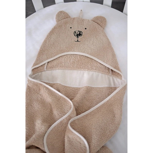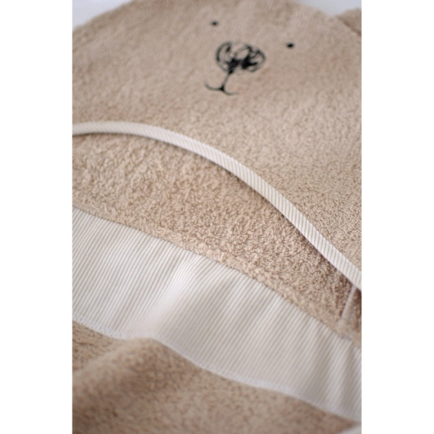 -Рушник для немовлят виготовляється з 100% бавовни. Матеріал – повністю безпечний для шкіри дитини. Будь фарбування текстилю виконується виключно екологічними барвниками без токсичних смолистих домішок.