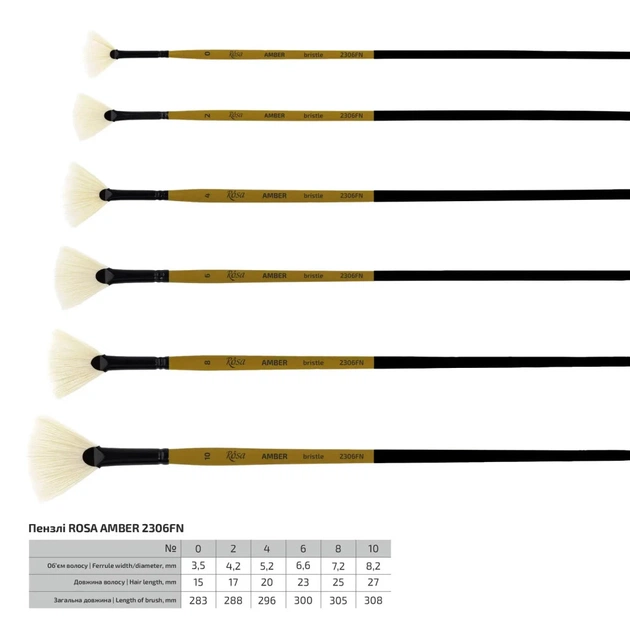 Пензлик для малювання Rosa Щетина віялова, AMBER 2306FN, №8 (4823098533573)