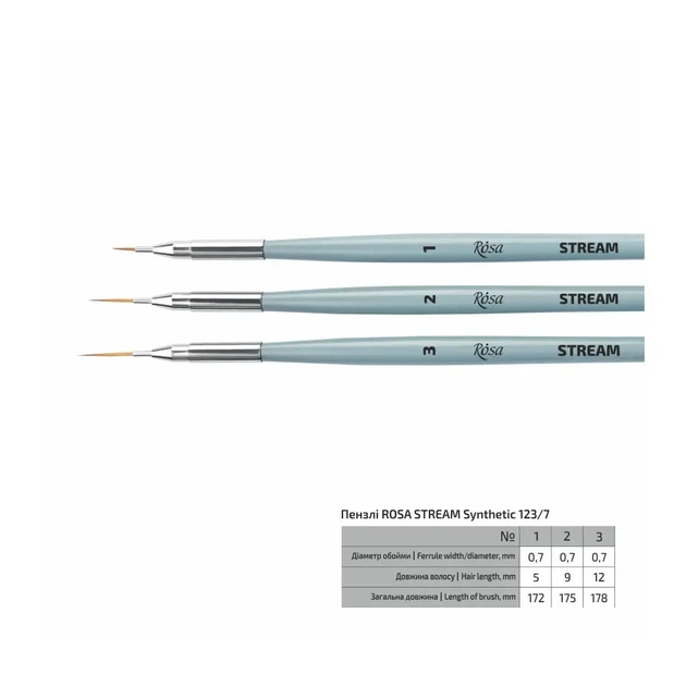 Пензлик для малювання Rosa Синтетика кругла, лайнер, STREAM 123/7, № 3 (4823098516972)
