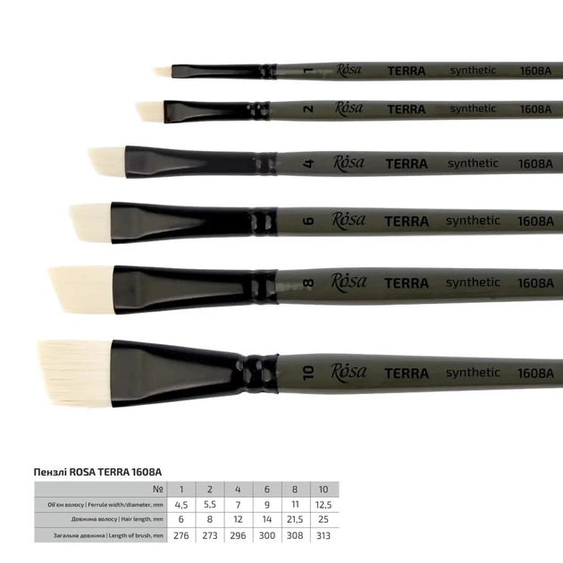 Пензлик для малювання Rosa Синтетика кутова, TERRA 1608A, №6 (4823098533832)