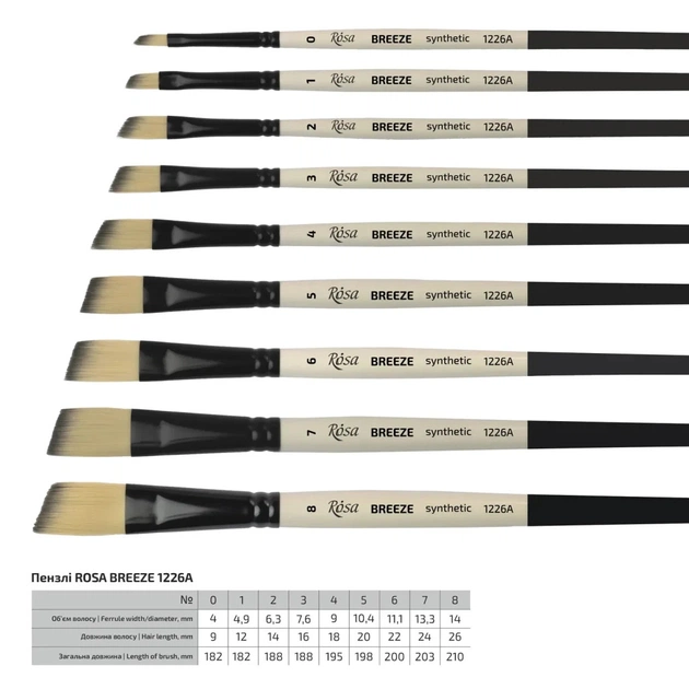 Пензлик для малювання Rosa Синтетика овальна, BREEZE 1226FR, №1 (4823098535652)