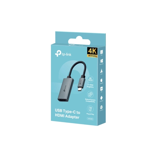 Адаптер TP-LINK UA520C дозволяє підключати пристрої з USB-C до зовнішніх дисплеїв через HDMI. Підтримка роздільної здатності до 4K@60 Гц забезпечує чітке та плавне зображення. Пристрій працює без встановлення драйверів завдяки Plug and Play. Компактний корпус з алюмінієвого сплаву зручний для щоденного використання. Сумісний з основними операційними системами.