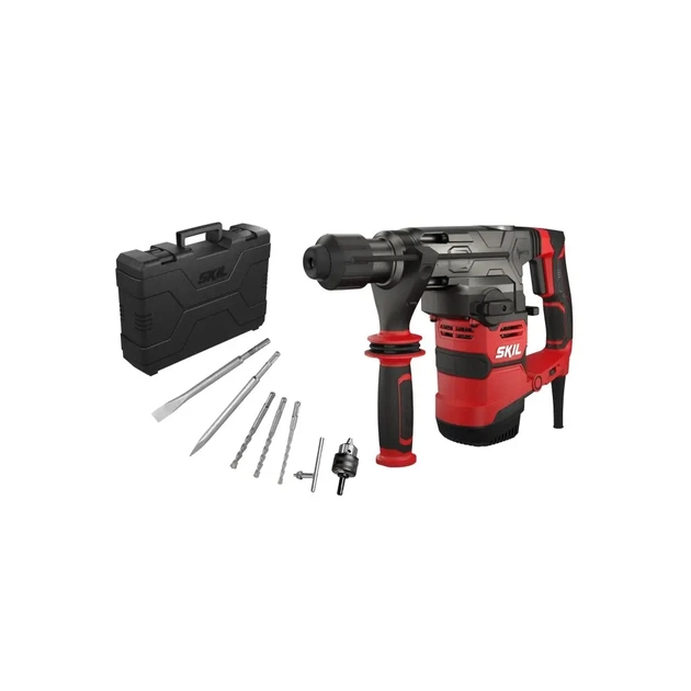 Трифункціональний перфоратор SKIL 1781 SDS має дуже потужний двигун потужністю 1500 Вт і попередній вибір швидкості для оптимального контролю. Він має функцію молотка для свердління в бетоні, функцію зупинки удару для звичайного свердління та функцію зупинки обертання для довбання. Завдяки системі зменшення вібрації (VRS), зручній L-подібній формі та міцному магнієвому корпусу цей дриль ідеально підходить для складних робіт, пов’язаних із свердлінням бетону до 36 мм і довбанням. Система «SDS+» забезпечує швидку та легку заміну аксесуарів. М'яка рукоятка проти ковзання та регульована антивібраційна бічна ручка забезпечують комфортне керування двома руками. За допомогою зручного вимірювача глибини ви можете встановити глибину свердління для глухих отворів. SKIL 1781 GB постачається в міцному кейсі з набором із трьох свердел для бетону SDS+ на 8, 10 і 12 мм, гострого долота, плоского долота та 13-мм патрона з адаптером SDS+.