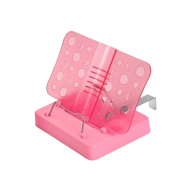 Особливість даного утримувача для книг полягає в тому, що він може стояти як на рівній поверхні, так і на стільниці з кутом нахилу. Фіксується на стільниці металевою рейкою із вигнутим накінечником, яка регулюється по довжині.