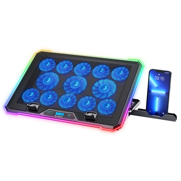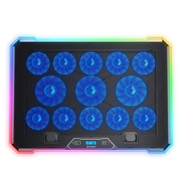 Охолоджуюча підставка Gamepro CP1090 обладнана безпрецедентною кількістю вентиляторів: 10 вентиляторів розміром 60 х 60 х 15 мм, які працюють на швидкості 2550 об/хв, та 3 вентилятори розміром 80 х 80 х 10 мм із швидкістю 1750 об/хв. Завдяки дев'яти налаштовуваним рівням висоти, кожен користувач може знайти оптимальний кут для роботи або розваг.