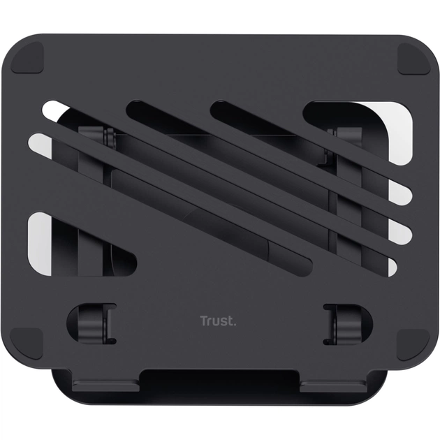 Trust Zeff Metal (25482) — це міцна, добре продумана підставка для ноутбука до 16″, що забезпечує комфортну працю, ергономіку та охолодження. Особливо зручною є функція 360° обертання.