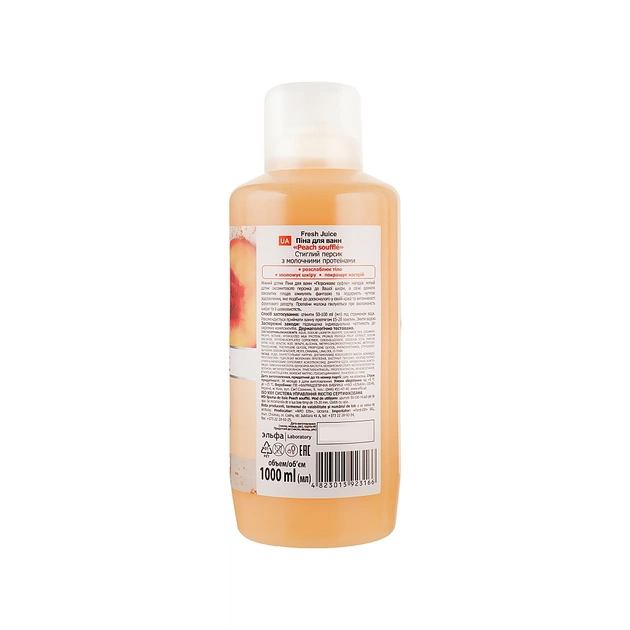 Повітряна піна ласкаво торкається до шкірного покриву, немов оксамитовий персик. Вона огортає свіжим фруктовим ароматом, змушуючи тремтіти почуття, оживляючи фантазію і даруючи чуттєве задоволення, наче від солодкого десерту, але без шкоди для фігури.