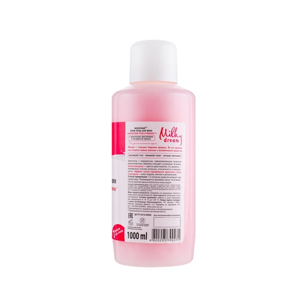Прекрасна крем-піна для ван бренда Milky Dream дозволить влаштувати домашню релаксуючу процедуру, яка подарує найприємніші і незабутні емоції. Засіб має спокусливий і ваблячий ванільно-квітковий аромат, здатний будити почуття і таємні бажання. Делікатна формула крема-піни спрямована на бережне очищення,живлення і глибоке відновлення епідермісу. Тому після прийняття ванни з цим «цілющим зіллям» шкіра тіла придбає розкішну гладкість і оксамитовість.
