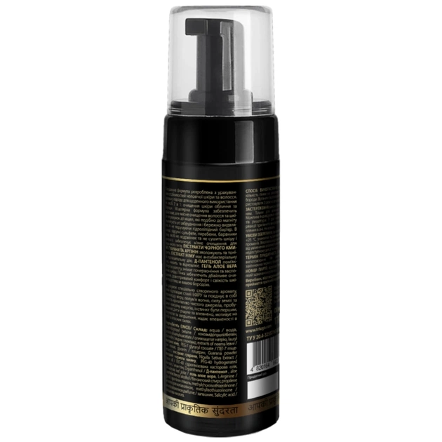- Aqua/вода, cocamidopropyl betaine/кокоамідопропілбетаін, sodium olivamphoacetate/оливоацетат натрію, lauryl qlucoside/лаурил глюкозид, extracts of neems leave /екстракт німу, PEG-7 glyceryl cocoate/ПЕГ-7 гліцерил кокоат, glycerin/гліцерин, Guaraná powder extract /екстракт гуарани, Nigella Sativa Extract /екстракт чорного кмину, PEG-40 hydrogenated castor oil/ПЕГ-40 гідрогенізована касторова олія, allantoin/алантоін, D-panthenol /Д-пантенол , aloe barbadensis leaf juice /гель алое вера, L-Argin