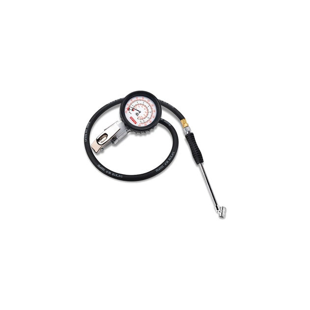 Цей пістолет підкачування JEAL220B має алюмінієвий наконечник із латунним клапаном та великий, читабельний манометр із гумовим корпусом. Гумовий шланг високого тиску обладнаний хромованим сталевим патроном подвійної дії. Рухлива насадка забезпечує доступ до всіх вентилів. Спусковий гачок має два положення «Впуск» і «Випуск». Ця модель ідеально пасує для різних видів шин, особливо вантажних. Простий і легкий в експлуатації.