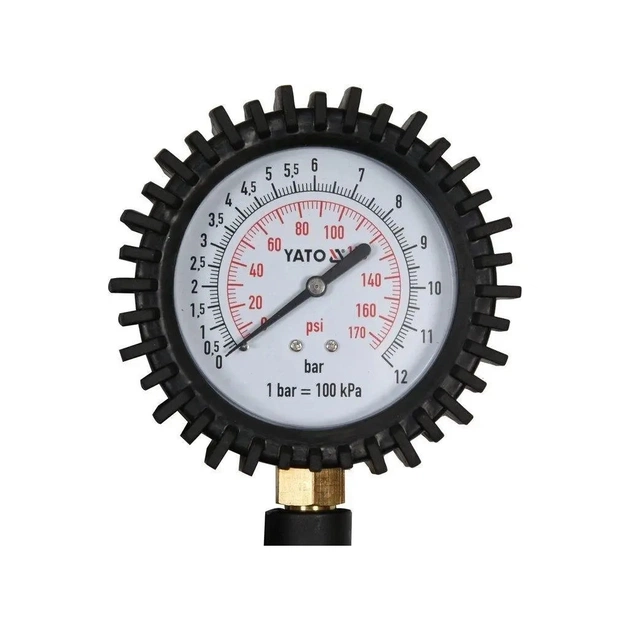 Пістолет для накачування шин YT-23703 від YATO - це зручний і практичний інструмент для періодичного обслуговування автомобіля. Міцні матеріали конструкції і наявність інформативного манометра виділяють пристрій. Основними перевагами виступають: