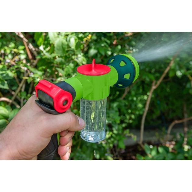 Пістолетний розпилювач Verto 15G715 універсальний помічник для саду та дому, можна використовувати для виконання різних задач. Піноутворювач ідеально підходить для очищення садових меблів, автомобілів, інструментів та інших поверхонь. Контейнер можна заповнити дезінфекційним розчином для безпечного та ефективного очищення.
