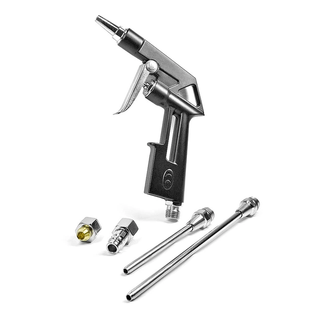 Пістолет комплектується додатковими насадки та перехідниками, що неабияк розширює його функціональність.