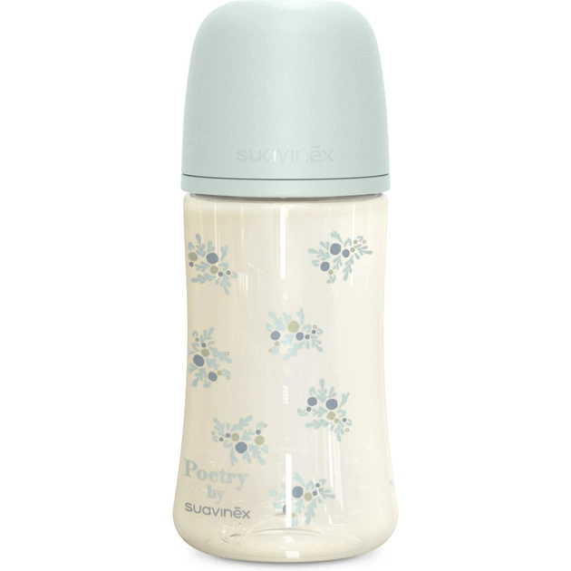 Пляшечка для годування Suavinex Poetry, 270 мл, фізіологічна соска середній потік, м'ятна (308970)